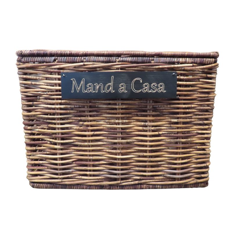 Het houtbordje wordt met splitpennen en touw geleverd, verpakt in noppenfolie. Je kunt zelf bepalen hoe je het houtbordje aan de mand vastmaakt.
